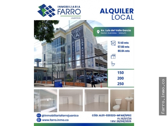 Dólares AmericanosFARRO.INMO.CO ALQUILA Locales EN EL C. C LAS AVENIDAS UBICADO EN LA AV LUIS DEL VALLE GARCIA AL LADO DE FORUM - MATURÍN CON LAS SIGUIENTES CARACTERÍSTICAS :