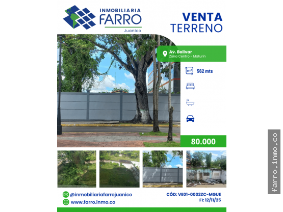 D贸lares AmericanosFARRO.INMO.CO Vende Terreo ubicado en la Avenida Bolívar, Maturín